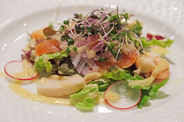 ランチコース 3500円 の海鮮のシーザーサラダ風