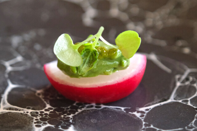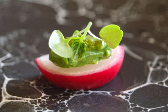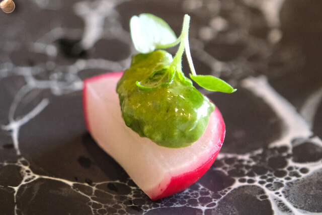 御殿場の二十日大根にハーブのソースをのせて
