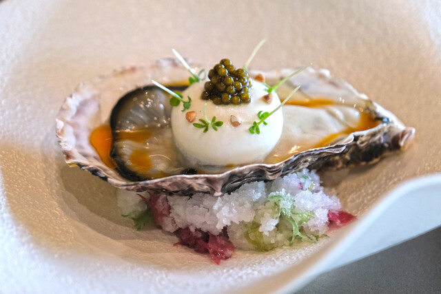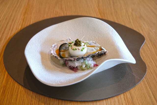 ランチコース 16488円 の北海道サロマ湖の牡蠣 レア仕立て