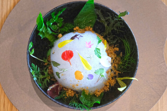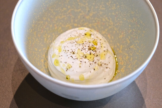 ランチコース 16488円 の京都るり渓やぎ農園の山羊のミルクのエスプーマ