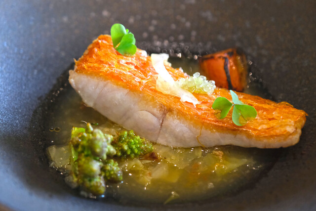 ランチコース 16488円 の駿河湾の金目鯛 鱗焼き