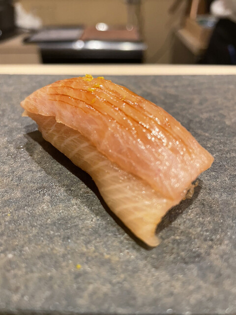 前回来た時より、洗練されて来ましたね。柚子などを使い香りが楽しめるようになったのとシャリが2種類になったためかと思われ。どんどん進化しているので楽しみで仕方がないです。