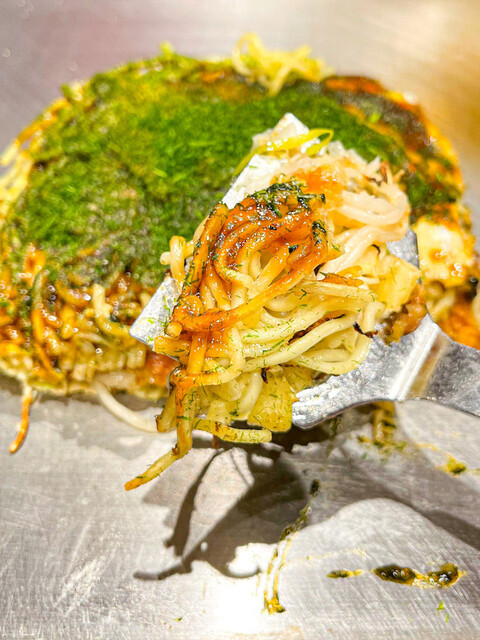 キャベツのすいぶんの飛ばし方、生地の厚さ(薄さ)、生麺茹でた後の絶妙な水分の飛ばし方(旨みの凝縮)などなど、こだわりしか感じないお店。