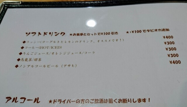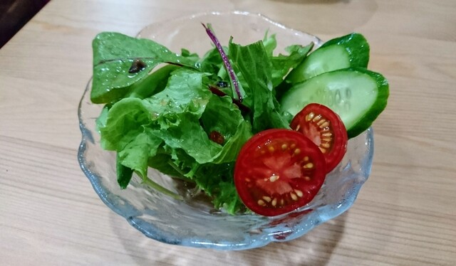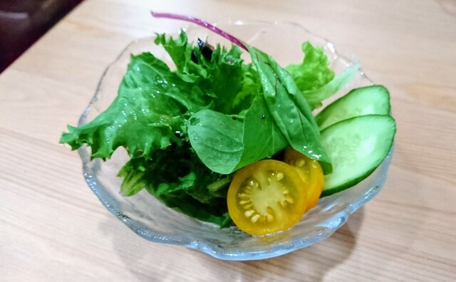 セットにはサラダとドリンクが付きます。サラダの美味しい店は間違いなく料理も美味しい。セットのドリンクはラッシー、コーヒー、烏龍茶、緑茶、オレンジジュースやリンゴジュース、コーラなどから選べます。