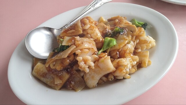いつもの故郷の友人と昼呑み。生ビールで乾杯。お通しは麻婆ダレがかかった冷奴。愚生イチオシの「海老と銀杏の塩炒め」や「イカのオイスターソース炒め」「カニ玉」「鶏の唐揚げ」をつまみに談笑。小腹が空いたので「揚げ焼きそば」「チャーハン」を注文。他愛もない話しで盛り上がり次の店へ(笑)