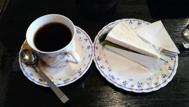 「海老ピラフセット」は、バターが仄かに香り、味はやや薄目でさっぱりとした味わい。個人的には黒胡椒が欲しいところだが贅沢は言うまい。チーズケーキや抹茶ケーキを付けても1000円でお釣りがくる。