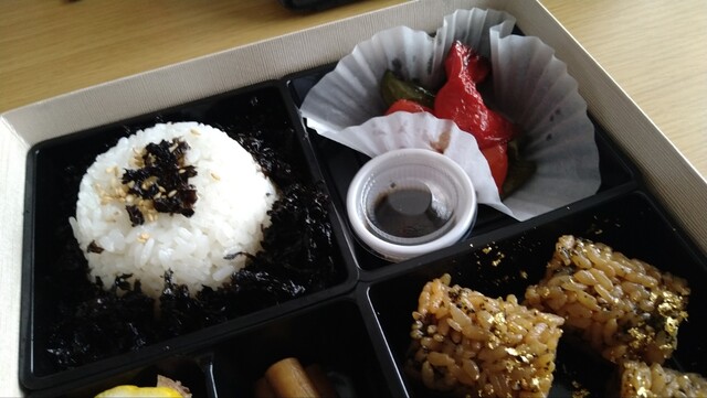 「初代海苔弁」というネーミングから、現在の店主夫婦の意気込みを感じる。平日限定20個(1080円)。賞味期限は午後3時まで。米は須賀川市泉田米こしひかり。天栄村の鈴木醤油店や川俣シャモ、ニッケイファームの野菜など食材一つ一つに拘ってます。味は愚生的には濃いめかな。とにかく海苔が美味い。