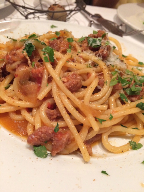 ■パスタ2(スパゲッティネという太いパスタにトマトと肉のソースが良く絡む!)