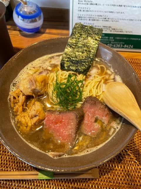 夢にでてきた中華そば「黒毛和牛ローストビーフ、岩中豚、九条葱入」(1500)