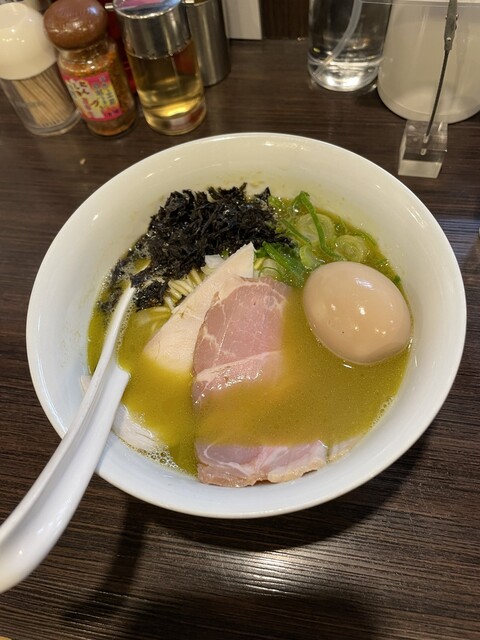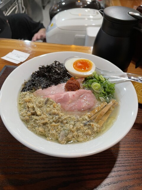 和出汁そば・貝(1080円)+特製出汁玉子(150円)