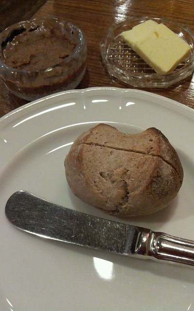 天然酵母パンは豚のリエッタ、バターでいただきます