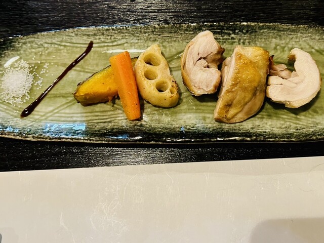 鯛の焼物は皮はパリパリで身はフワッと柔らかく、と鶏の焼物は全体から旨味が滲み出るような柔らかい味わいでした。