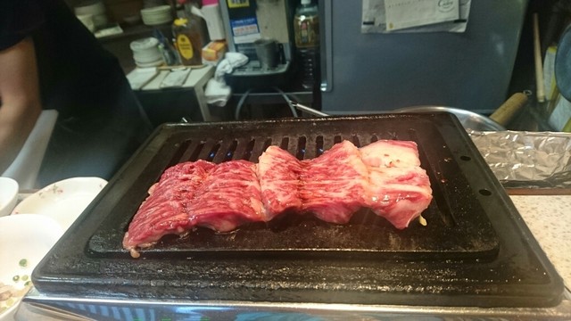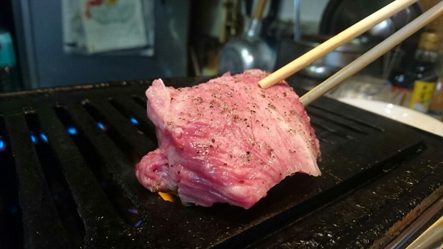 3センチを超える厚さのタンステーキや、塊で焼いてから目の前で切ってくれるハラミやミノ。とろける焼きしゃぶ。「これも食べる~?」と出してくれたテッチャン。もちろん、どれもとても美味しかったです。全て国産の超新鮮なものなので、不味い訳が無いです。