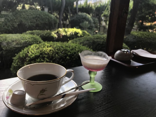 案内されたテーブルは、二人掛けで和室の中からお庭を見ながら食べるように配置されているところでした。人数が多いと、普通のテーブルに通されるみたいですね。