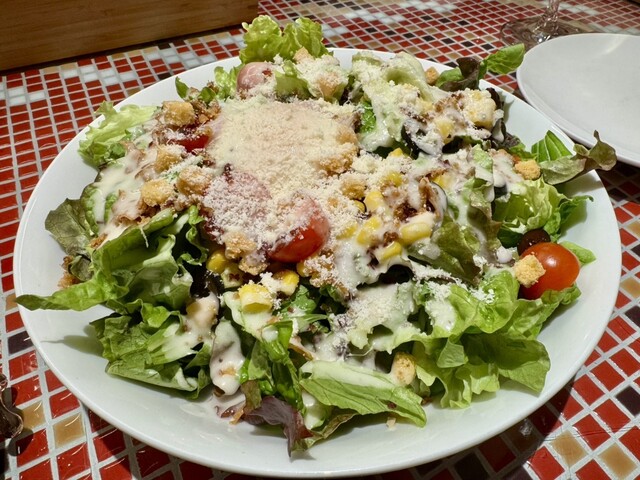 今回は、ルッコラとマッシュルームのサラダがめっちゃ美味かった。
