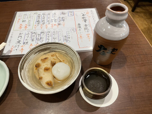 痛風小鍋を食べるのに徳利をもう一本頼んだので、前回は唐揚げを頼んだイカ軟骨を今日は串焼きで注文。