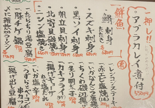 まだ夜のおすすめメニューが出来上がっていないらしい。