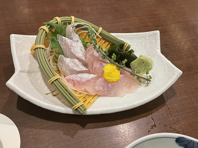 コチはちょっと薄めのお造り。これで歯応えがちょうどいい。