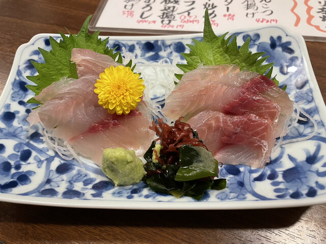 今日の鮮魚は千葉県銚子の真イワシ刺身と迷ったが、鳥取の天然ブリ刺身を選択。