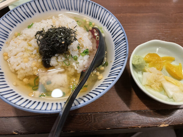 味噌汁はアラ汁。ランチの定食は味噌汁おかわり無料なので、日本酒呑みなら味噌汁だけでどんどん呑める。