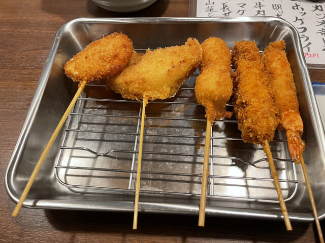 串カツ5本盛り合わせは本当にコスパがいい。ずっとこの価格でグランドメニューに居着いてほしい。