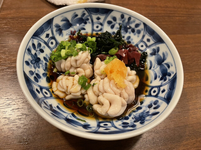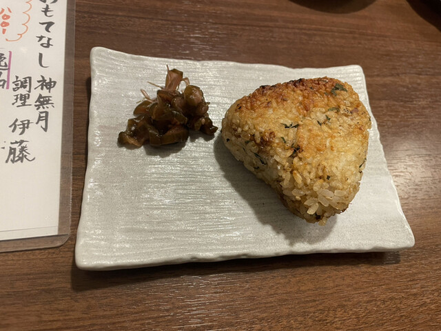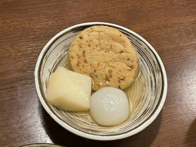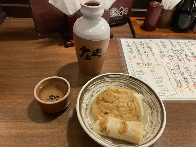 天狗舞山廃純米酒、お通し〔アジの南蛮漬け〕