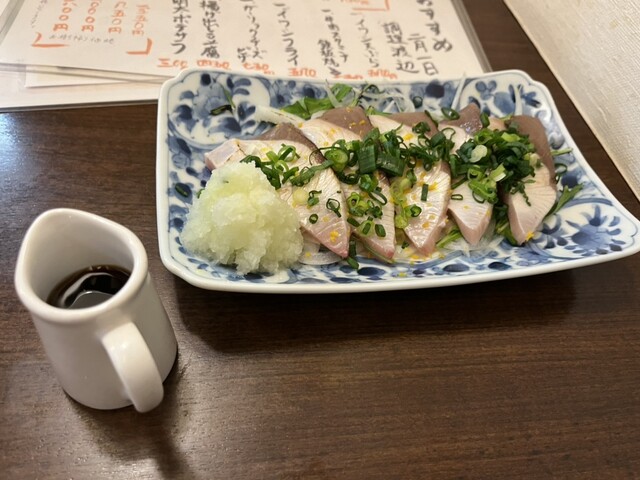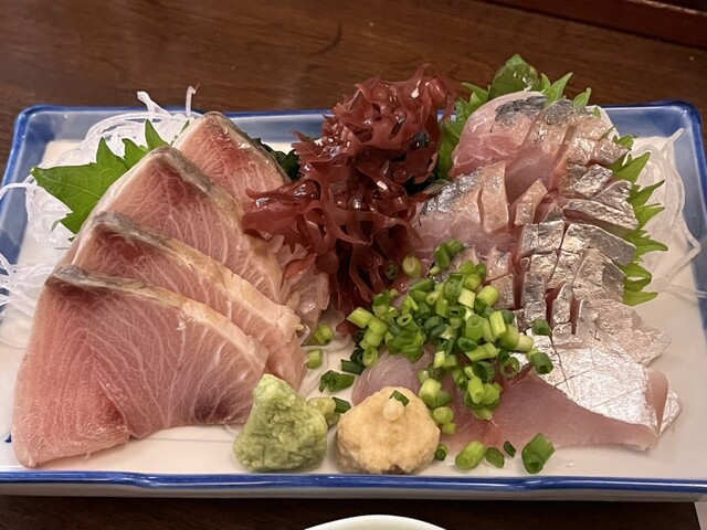 鮮魚はぶり刺身550円とあじ刺身390円。
