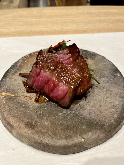 茨城県産牛の喉の辺り、ソトヒラをローストしてから