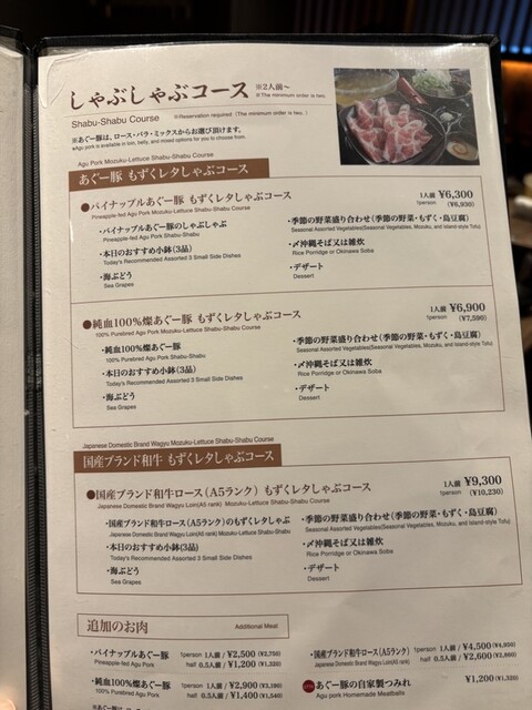 今回、2人で訪問し『パイナップルあぐー豚』と『純血100%あぐー豚』のコースを食べ比べしました。