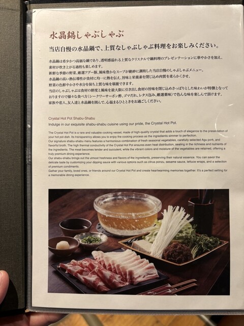 メインのしゃぶしゃぶ名物の水晶鍋でいただきます。