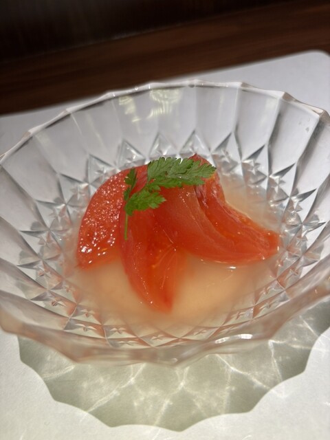 冷製トマトもコースに良い抜け感を作ってくれる口休め。