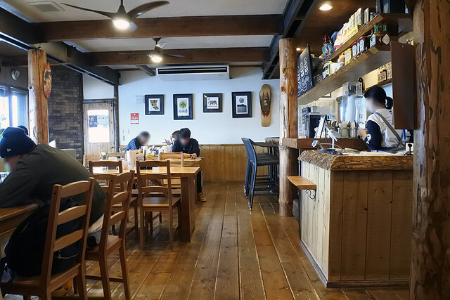 「ベローズフィールドビーチ」。昼はカフェ、夜はお酒も扱うハンバーガーのお店です。