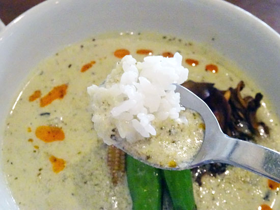 3月〜4月の限定メニュー、 森のバターとココナッツカレー930円+揚げチキンのトッピング270円