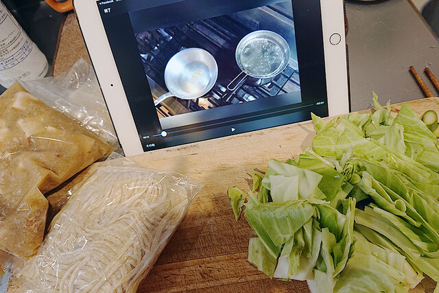 材料切りそろえて、さあ、動画見ながら調理開始!