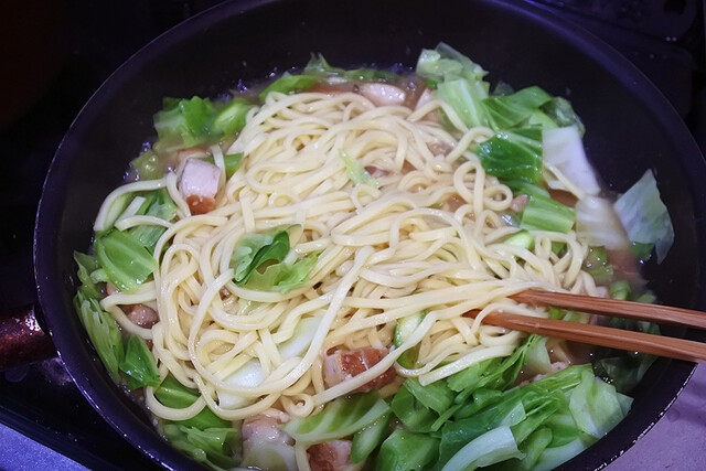 「麺のゆで時間残り2分くらいになったら野菜を…」