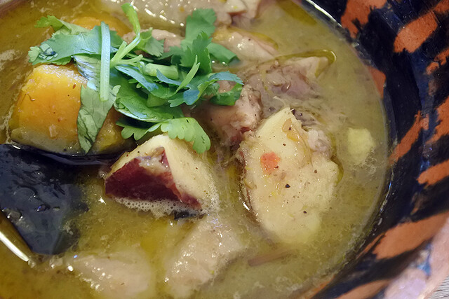トムカーガイは生姜と鶏ガラとココナッツミルクのスープ。