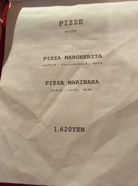 事前にネットで口コミをみた際に、美味しい焼き立てのピッツァをたべさせたいという店主の思いから、前菜を注文すると、前菜をたべ終わるまでピッツァが出てこないということが書かれていたので、いきなりピッツァを注文することに。