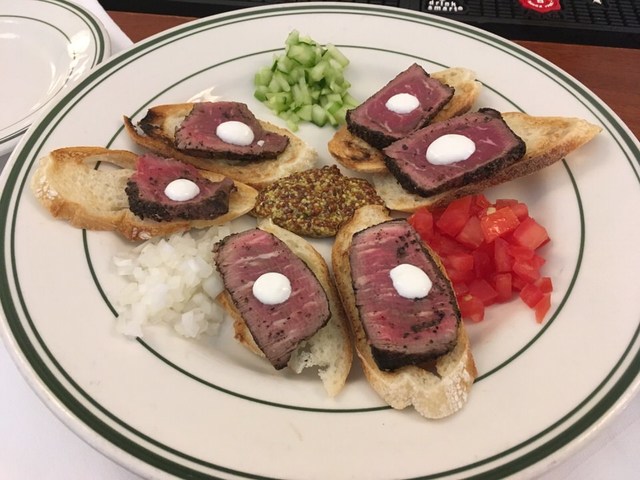そこで、ちょっと値は張りますが、そう言えばまだ食べたことのない、ウルフギャングのリブアイステーキをチョイス!もう一品は、こちらもまだ食べたことのない、ステーキスライダーにしてみました。