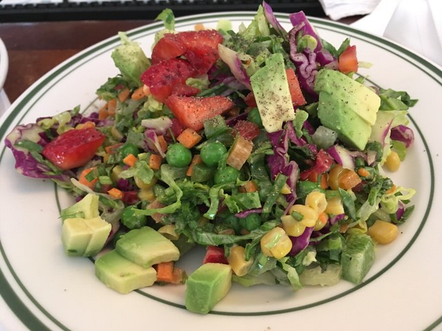 ウルフギャングのチョップドサラダは、トロピカルとついているだけあって、イチゴが入っています。サラダにイチゴはちょっと違和感ありますが、食べてみると意外にも合っている気がします。