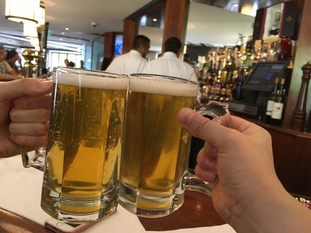 メニューも決まったことですし、とりあえず生!ハッピーアワーのビキニブロンド5ドルで乾杯です!