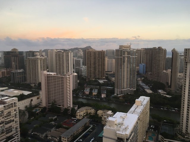 36階でほぼ全面窓になっているので、景色も素晴らしく、ダイヤモンドヘッドも見えました。