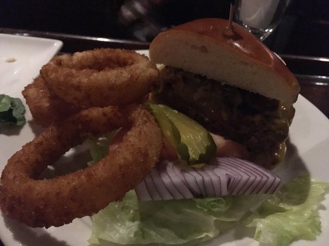 付け合わせはフライドポテトかオニオンリングが選べると言われたので、オニオンリングに。