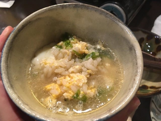 雑炊を注文すると鍋を一旦持っていかれ、厨房で雑炊を作ってくれます。