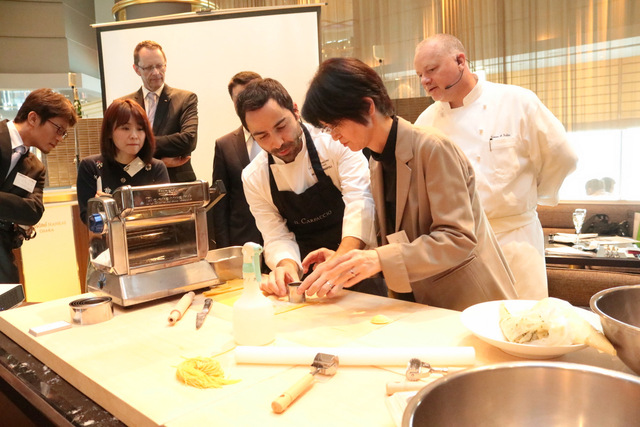 スイスホテルの総料理長 サイモン・A・フィッシャー氏もお手伝いしていましたが、パスタ作りは初めてらしく「very nervous」と冗談も交えながら場を和ませてましたw
