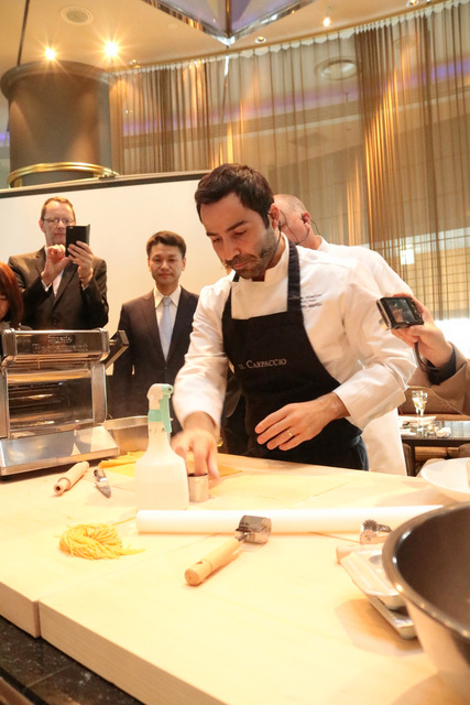 その後、センターのカウンターにてロベルト氏によるパスタ作りの実演コーナーが始まりました。