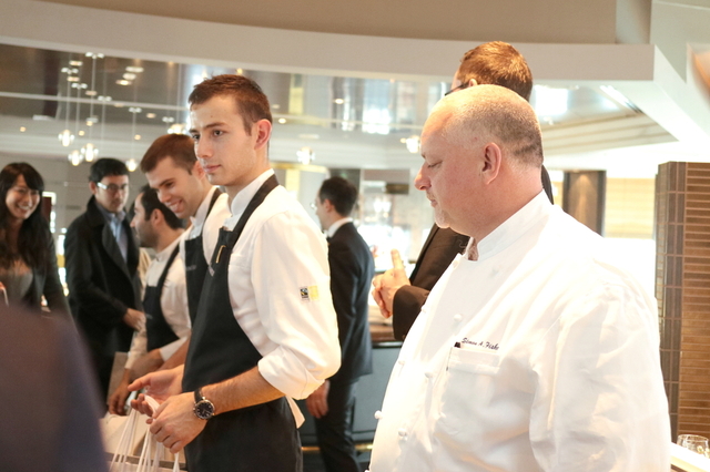 まずは、スイスホテル南海大阪 代表取締役 総支配人 Christian Schaufelbuehl (クリスチャン・シャウフェルヴュル)氏のご挨拶から始まり、今回の主役であるRoberto Rispoli (ロベルト・リスポリ)氏と、通訳の佐藤 直也氏。