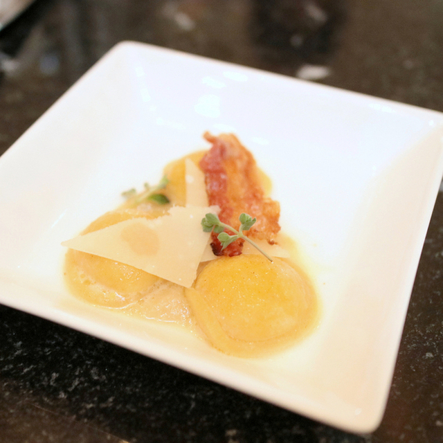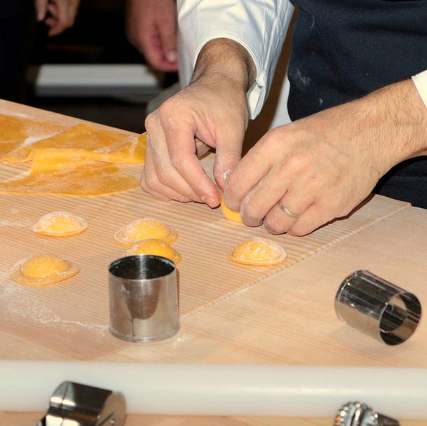 次はカルボナーラ用のトルテッリ。トルテッリは詰め物をしたパスタ。