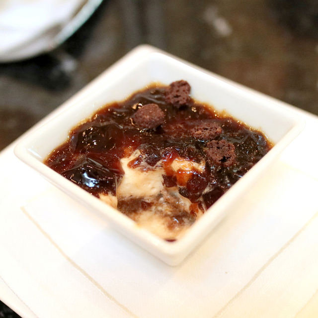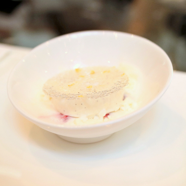 こちらには、ラングスティーヌというアカザエビやポルチーニ茸を使用したクリームを絞り出し、ピラミッドのような形に包んでました。
