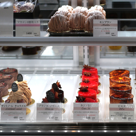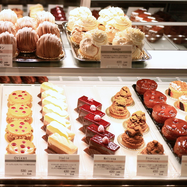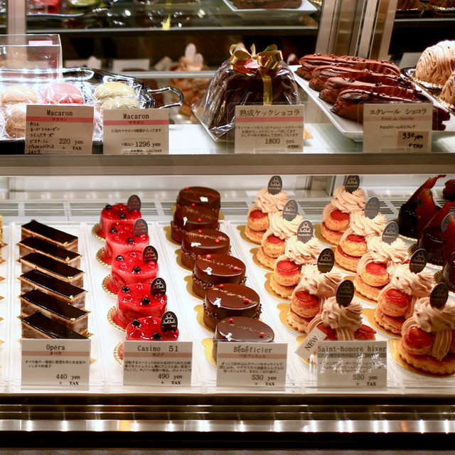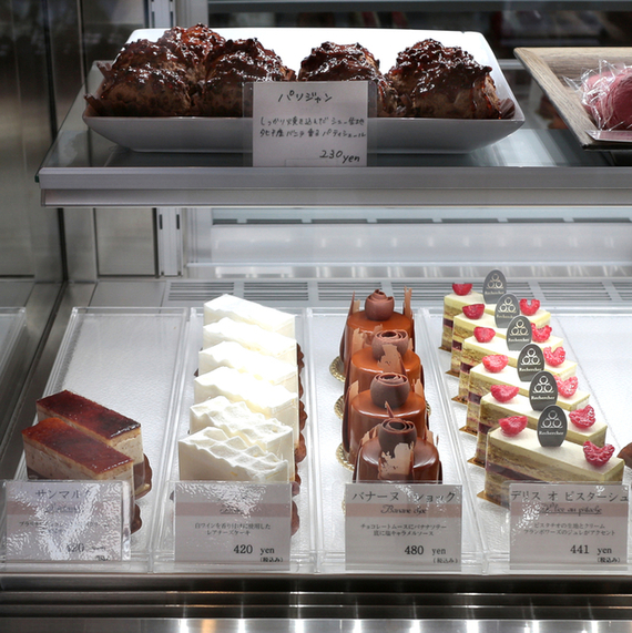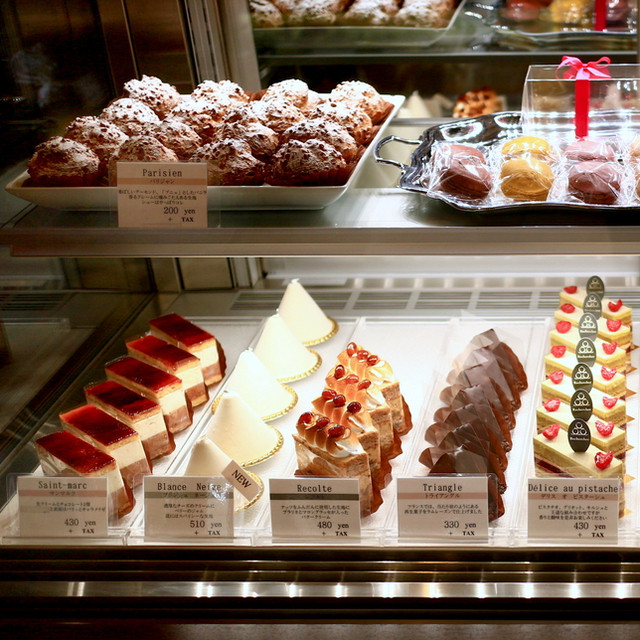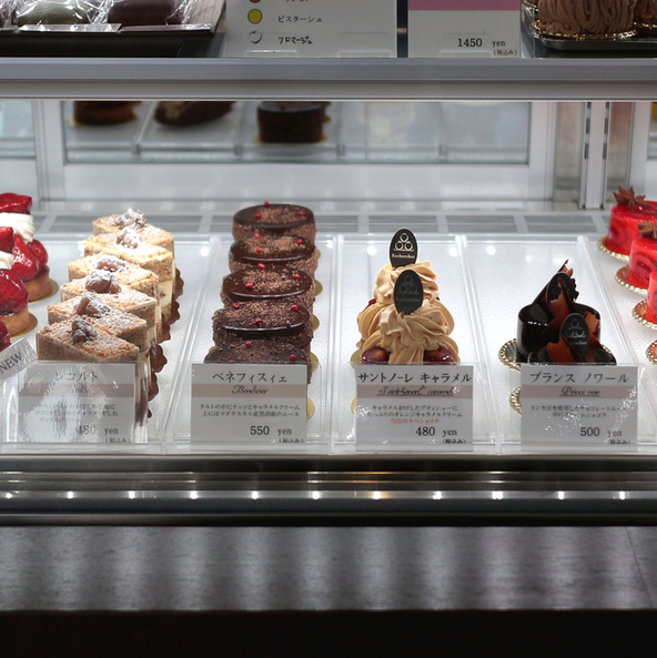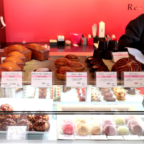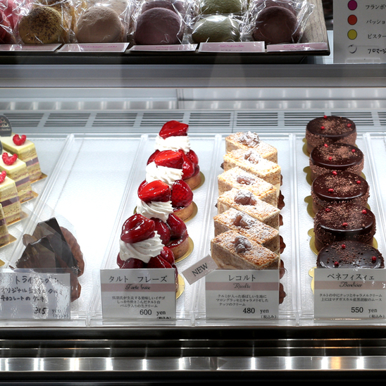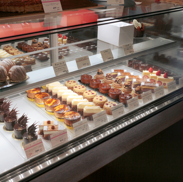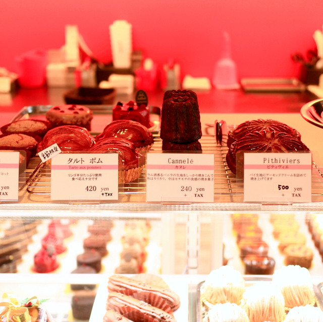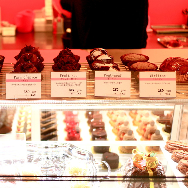 鮮明な赤がショーケース内で際立っていたケーキ。