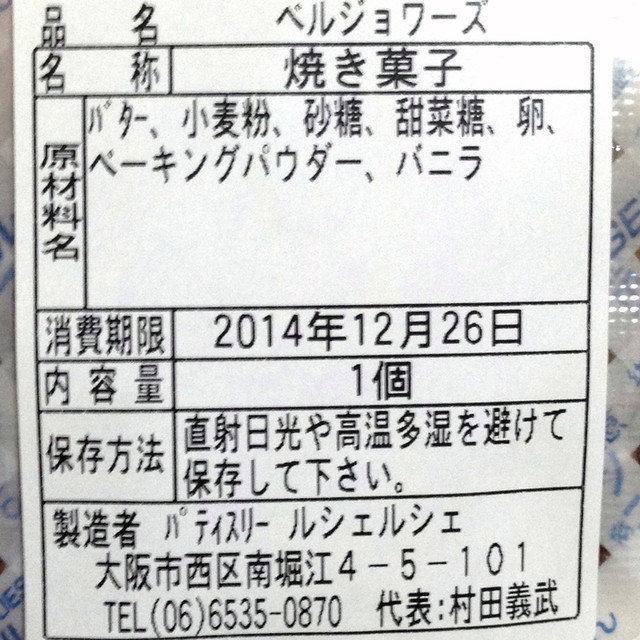 ベルジョワーズの原材料表示 '14 12月上旬